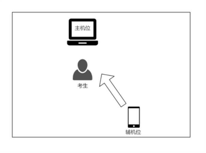 主機(jī)位電腦攝像頭對(duì)準(zhǔn)考生本人,輔機(jī)位設(shè)備攝像頭從考生后方成45°拍攝。要保證考生考試屏幕能清晰地被監(jiān)考員看到。雙機(jī)位均需確保攝像頭視角能看到考生考試的桌面和雙手。