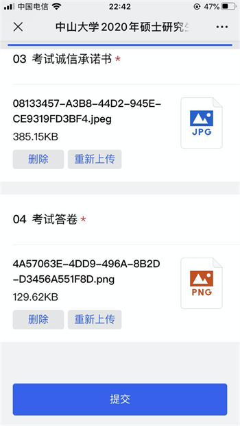 4.筆試結(jié)束后,所有考生不得繼續(xù)作答。考生根據(jù)監(jiān)考員要求,依序舉起3張答題紙,由監(jiān)考員進(jìn)行截圖。然后根據(jù)監(jiān)考員要求,取回輔機(jī)位手機(jī)或平板電腦,登錄與本院工作人員聯(lián)系的微信號(hào),掃描監(jiān)考員通過(guò)騰訊會(huì)議發(fā)布的二維碼,進(jìn)入答卷提交系統(tǒng),填寫(xiě)相關(guān)信息并完成承諾書(shū)及答卷的拍照和上傳(通過(guò)即時(shí)“拍照”上傳,每頁(yè)答卷單獨(dú)拍照,單獨(dú)上傳),上傳完畢后點(diǎn)擊【提交】完成考卷上交。全程必須保持主機(jī)位仍處于開(kāi)啟狀態(tài),且考生一直處在主機(jī)位的視頻畫(huà)面中。