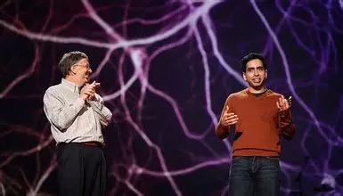 2011年3月,可汗在加州舉行的TED大會上發(fā)表演講,全體聽眾起立鼓掌。比爾·蓋茨當(dāng)場上臺,就可汗的項(xiàng)目與之交流。