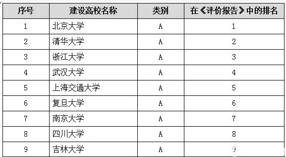 2018年世界一流大學(xué)建設(shè)高校排行榜